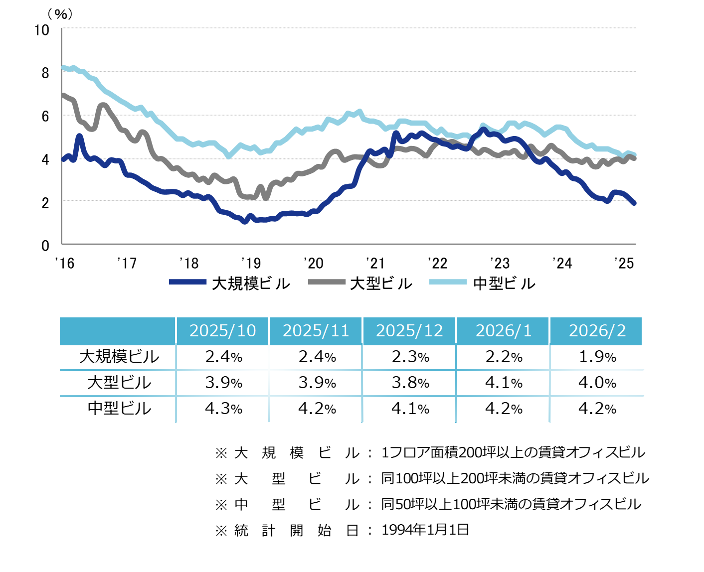空室率 前月から小幅な低下 「大規模」は2021年2月以来の1%台