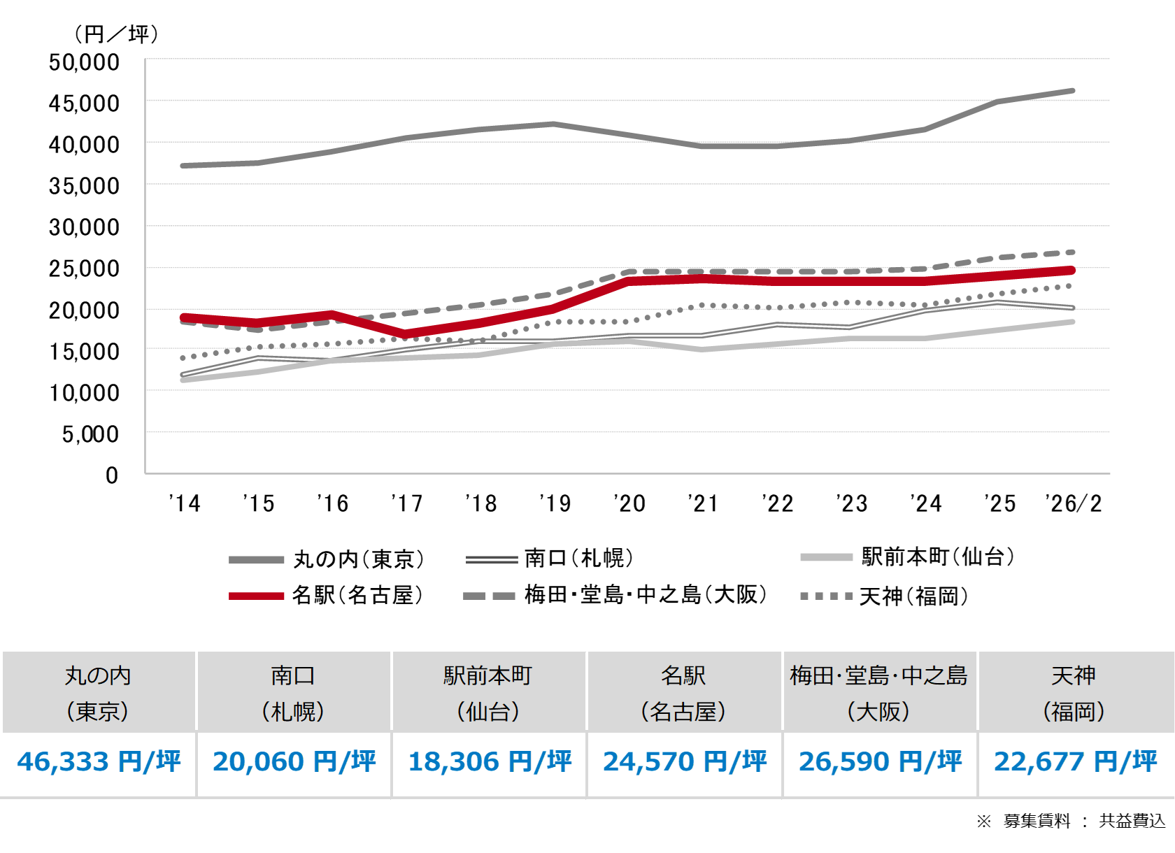 <募集賃料の推移(6大都市 大規模ビル・主要駅前地区)>
