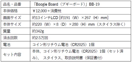 株式会社キングジム(本社:東京都千代田区 代表取締役社長:木村 美代子)は、紙に書くようななめらかな書き心地の電子メモパッド「Boogie Board(以下、ブギーボード)」の新モデルとして、現行ラインアップで最大筆記面積の「ブギーボード」BB-19(https://www.kingjim.co.jp/sp/boogieboard/bb19.html)を2025年6月13日(金)より発売します。