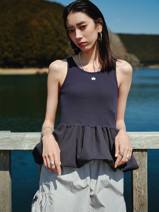 ワンポイント 刺繍 バルーン タンクトップ¥5,500(税込)