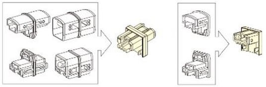 (左)胴縁連結金具、(右)エンドキャップの上下兼用化