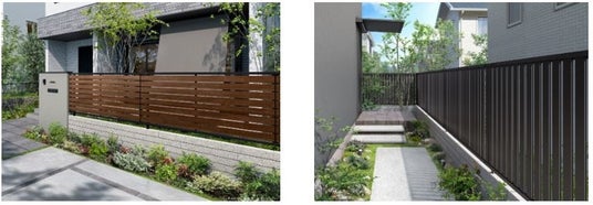 施工イメージ:(左)「ルシアス フェンス」YS3F型、(右)「シンプレオ フェンス」TS2型