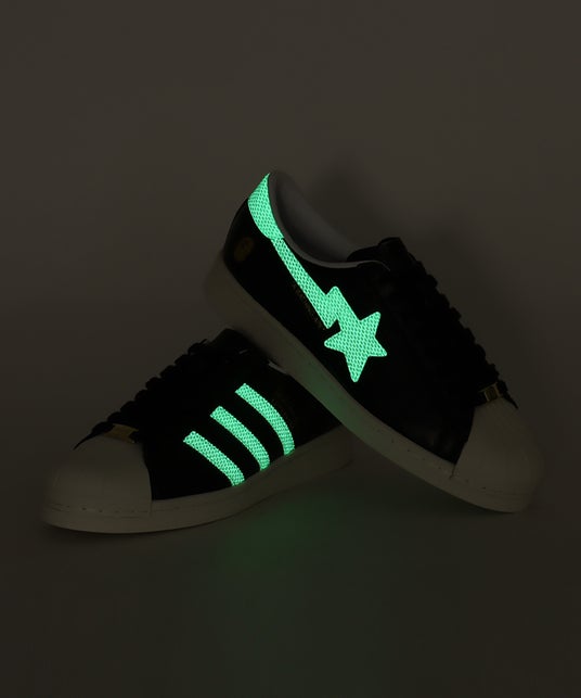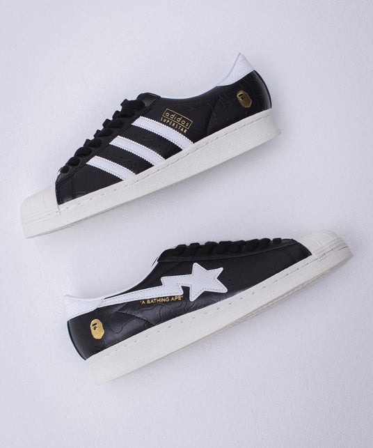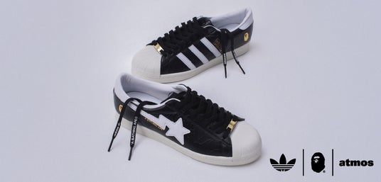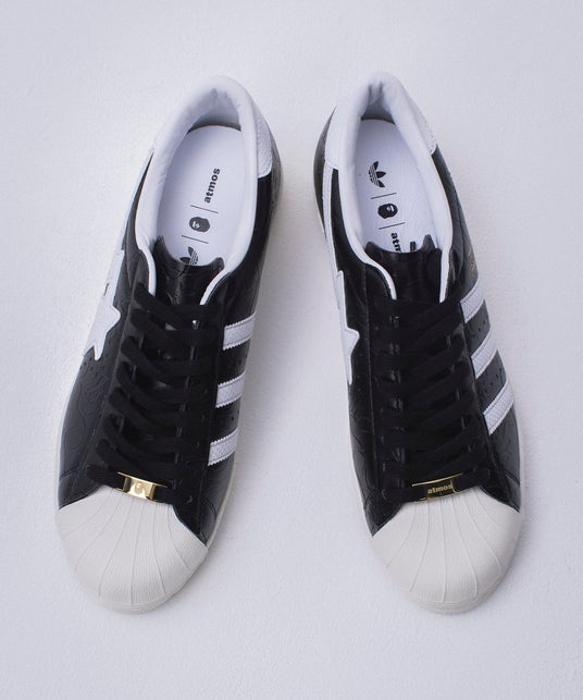 2025年は、BAPE STA(TM)︎とatmosが誕生25周年、adidas OriginalsのSUPERSTARが55周年を迎える節目の年。 共にストリートカルチャーを牽引してきたBAPE(R)とadidasによる初のトリプルコラボレーションモデルは、まさにアニバーサリーを祝うにふさわしい特別な一足となりました。