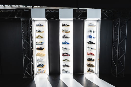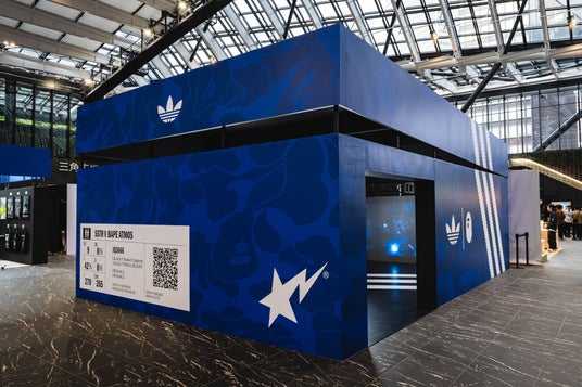 atmosconのBAPE(R)︎とadidas Originalsの協業ブースでは、この最新モデルの発表にあたり、ブース自体もシューズボックスを模した特別仕様に。スリーストライプスを配した青と白の印象的なグラフィックと立体的な演出が施され、イベント来場者のフォトスポットとしても高い人気を集めました。