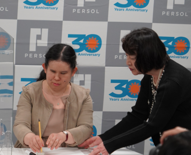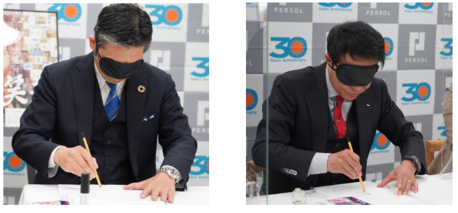 初めての触覚書道で、中山さん、パーソルホールディングスの和田も興味深く触覚書道の方法を確認しました。