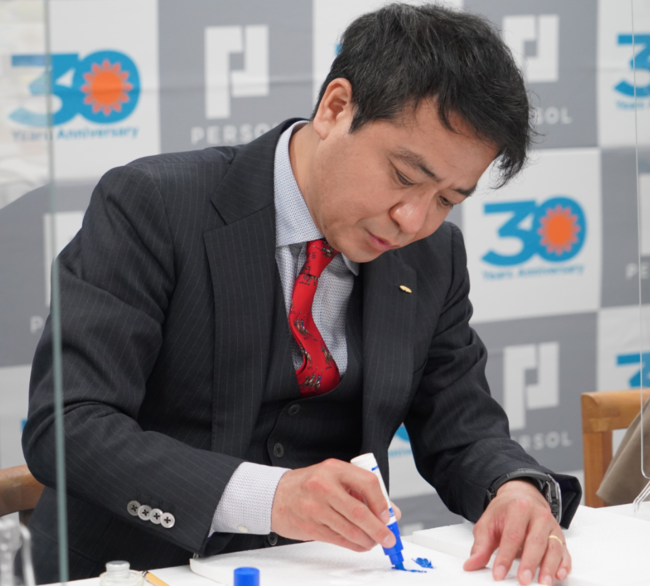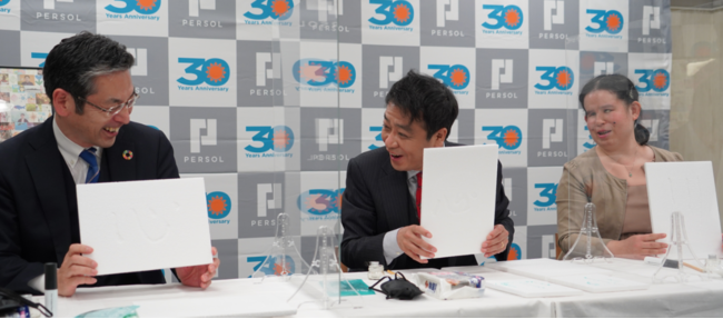 展覧会開催中の3月29日(火)、パラリンアート理事を務める、タレントの中山 秀征さんをお招きし、パーソルサンクスの社員と共に視覚障害者が手の先で楽しむ「触覚書道」の体験イベントを開催いたしました。