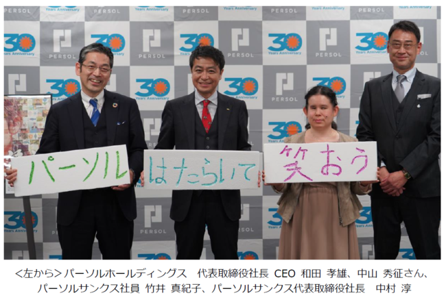 総合人材サービスのパーソルグループで障害者雇用を手掛けるパーソルサンクス株式会社(本社:東京都豊島区、代表取締役社長:中村 淳、以下パーソルサンクス)は創業30周年を迎えたことを記念し、「私にとっての笑顔」をテーマに、パーソルサンクスおよびパーソルグループ各社の社員やご家族からアート作品を募集。一般社団法人 障がい者自立推進機構のご協力のもと、3月23日(水)~30日(水)の間、集まった作品の展覧会を開催しております。また、今回集まった作品、パラリンアート世界大会2021準グランプリ作品「平和の笑顔」(田尻 はじめ作)およびタレントの中山 秀征さんの揮毫(きごう)作品とコラボしたモザイクアートも一緒に展示しております。