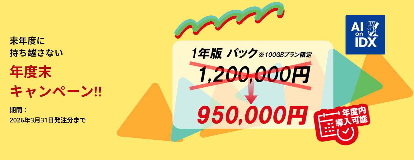 - 対象製品:AI孔明 on IDX 1年版パック 100GBプラン限定
