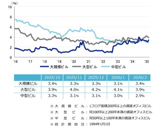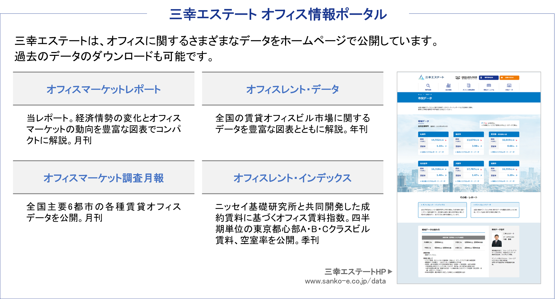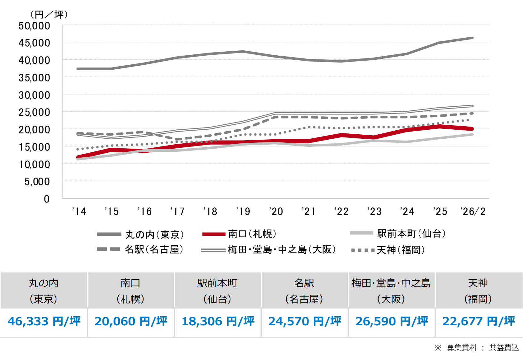 三幸エステート株式会社(本社:東京都中央区、取締役社長:福島正二郎)は、2026年2月度の札幌市オフィス賃貸状況(空室率&現空面積:全規模、募集賃料&募集面積:全規模、規模別空室率、主要エリア※1空室率:全規模)および全国6大都市(東京・札幌・仙台・名古屋・大阪・福岡)の大規模ビルのマーケットデータをまとめた「オフィスマーケット2026年3月号札幌」を公表します。
