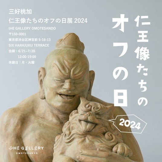 米原康正キュレーションにより、2023年7月に原宿とんちゃん通りにオープンしたtHE GALLERY HARAJUKUに次いで2024年6月にtHE GALLERY OMOTESANDOがオープンします。第1回目の展示として、彫刻家・三好桃加による個展「仁王像たちのオフの日展 2024」を2024年6月21日(金)より開催いたします。「仁王像たちのオフの日」をイメージして制作された、微笑ましくゆったりとした時間を過ごしている仁王像たちを是非ご高覧ください。