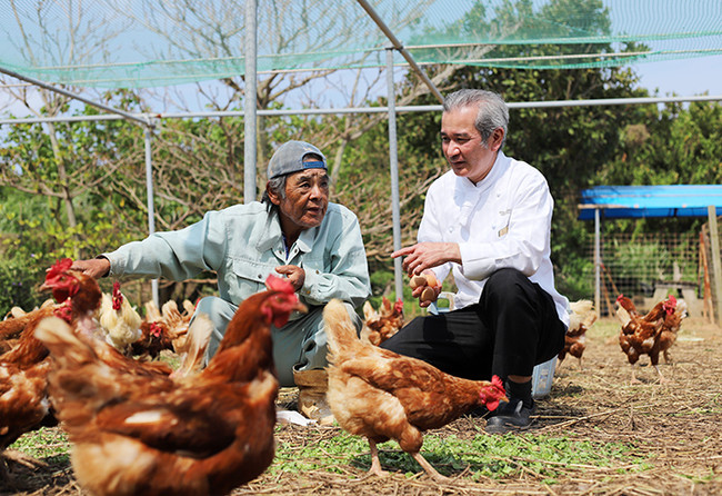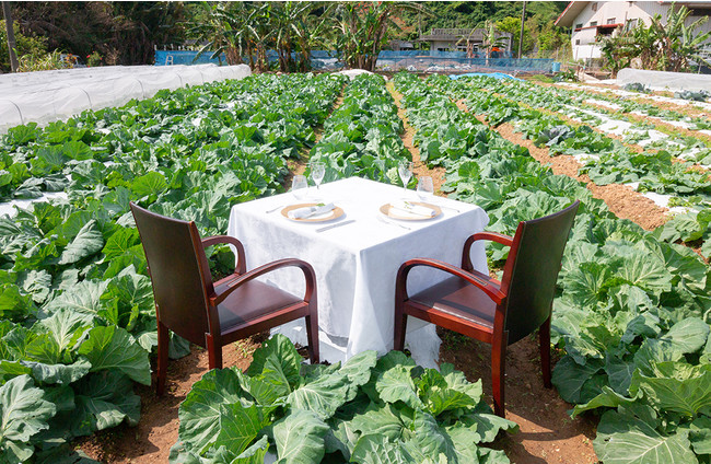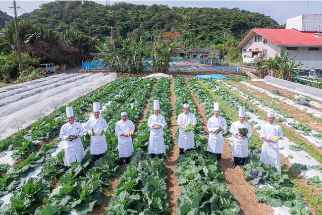 恩納村や近隣市町村の農水産物を取り扱う「おんなの駅」のご協力を得て、8名のシェフが農家さんの畑に出かけて食材を吟味し、素材の良さを引き出す調理法でスペシャルな料理とスイーツ「シェフの一皿」に仕上げました。