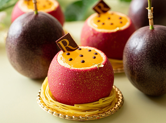 「あたびーファーム」のパッションフルーツとココナッツのムース。見た目もパッションフルーツのように仕上げています。