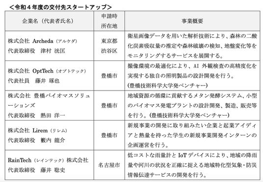 豊橋市では、PMF(プロダクトマーケットフィット)を目指す起業初期のスタートアップの事業開発を積極的に後押しするため、令和4年度にスタートアップチャレンジ交付金制度を創設。