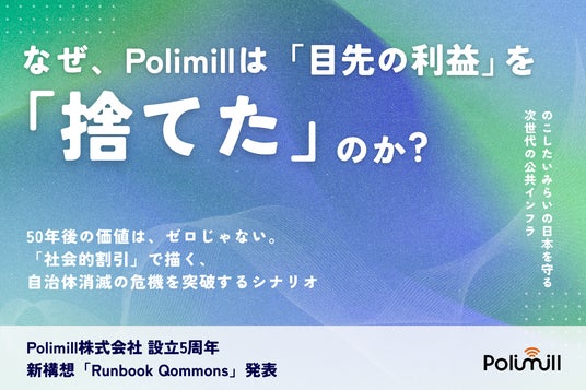 設立5周年を迎えた本日より、Polimillは数学的・長期的な視野に基づくビジネスモデルをさらに加速させ、「のこしたいみらい」の実現に向けて皆様と共に力強く前進してまいります。