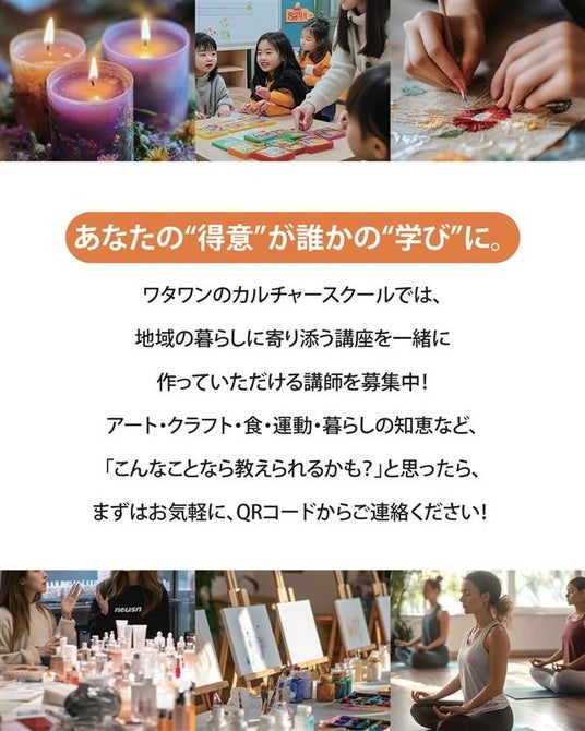 あなたの“得意”が、誰かの“できた!”につながる場所。それがワタワンのカルチャースクールです。