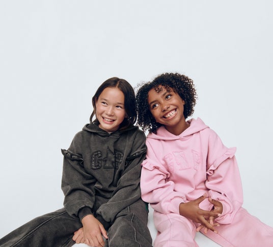 ウィキッドの象徴であるピンク、グリーン、ブラックカラーを基調とし、映画の主人公エルファバとグリンダからインスピレーションを得たコレクションとなっています。ガールズは、ウィメンズとお揃いのヴィンテージソフト ラッフルフリル パーカー、セットアップにもなるヴィンテージソフト バギー スウェットパンツ、GAPロゴとウィキッドの代表曲名がデザインされたヴィンテージソフト スウェットワンピース、グラフィックTシャツ、ビーニー、クルーソックスといった全13種が揃います。ウィメンズは、キッズとお揃いで楽しめるヴィンテージソフト GAPロゴパーカーがピンクとブラックの2色で展開します。