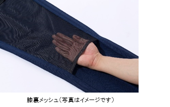 通気度100cc(従来品は40cc)の高い通気性を実現。蒸れを抑えて快適な着心地に。膝裏はメッシュ素材でベタつきを軽減してくれます。