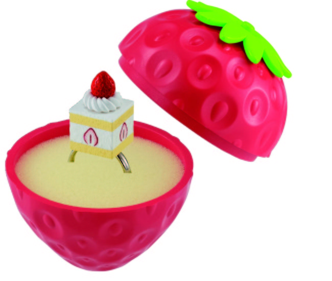 大人気!リングシリーズに可愛いいちごモチーフが仲間入り!イチゴケースを開けると、いちごスイーツリングが入っています。