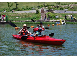 水の流れがゆるやかな園内の池で行うので、初めての方でも安心してお楽しみいただけます。友達や親子などペアで、カヤックを体験できます。