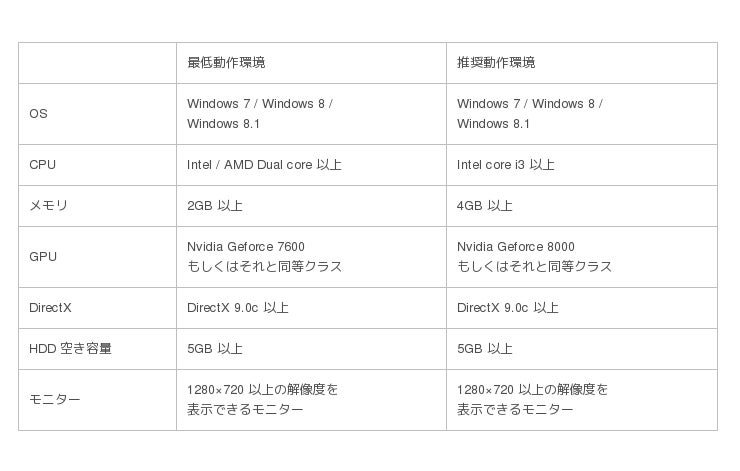 ※上記オープンβテスト基準動作環境は、正式サービス時の動作環境と異なる場合があります。