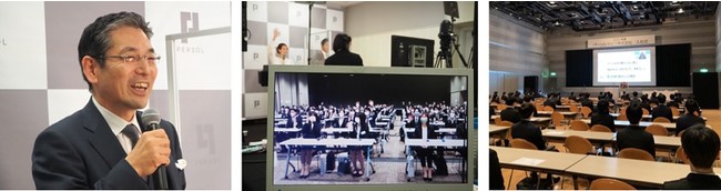 実施している17社の新入社員約1,000名が参加、アンケートシステムを活用した役員への質問コーナーに加え、