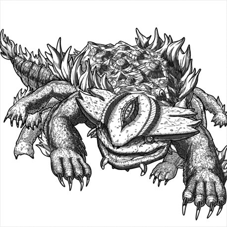 竹島さん(キャラクターデザイン学科1年)今回、『モノクローム・エコーズ』に登場するモンスターのイラスト制作を通して、キャラクターを生み出すことの難しさと考える過程の楽しさを学ぶことができ、貴重な経験になりました。制作中はモンスターに実在感を与えることを意識し、実在する生物の骨格や動きを見た目やポーズに取り入れました。