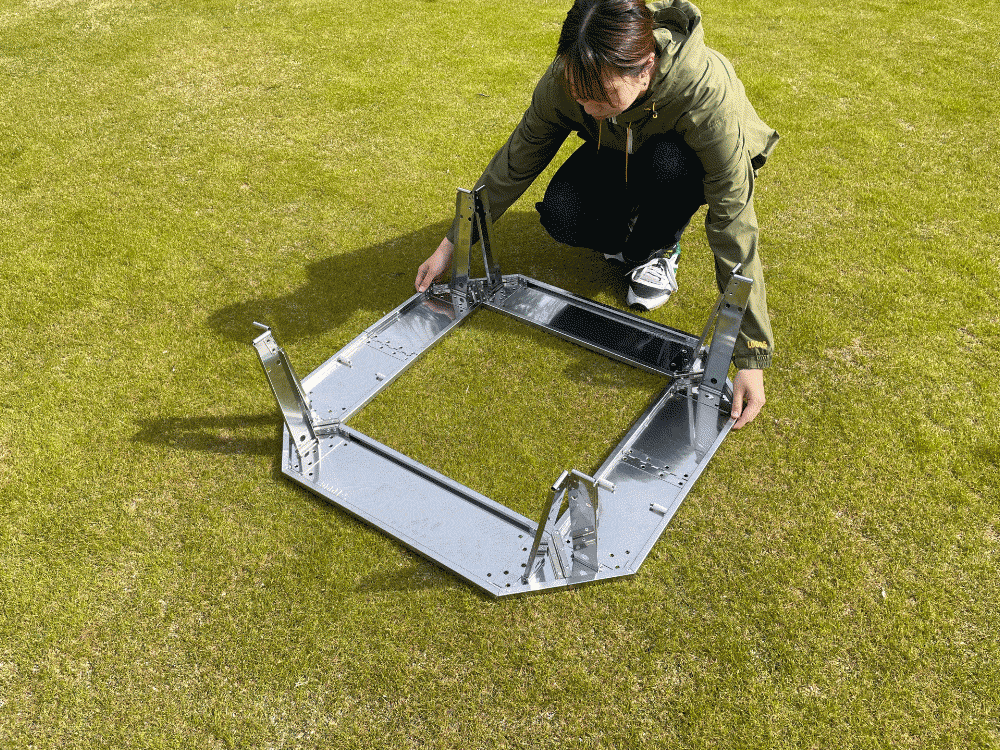 従来品の囲炉裏テーブルとは違い、シンプルな3ステップで組立てることができるため、準備時間を短縮し、家族団らんの時間をより作り出せるようになりました。4人以上で囲めるサイズのテーブルでありながら女性でも簡単に取り扱えます。足の構造も従来品よりパワーアップしており、安定感抜群の使い心地で安心して使用できます。