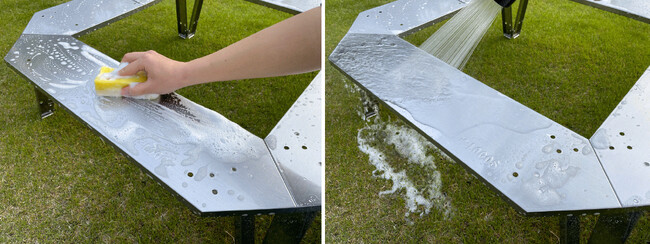 耐熱性に優れたステンレス製のため、熱々のダッチオーブンやフライパンなども鍋敷き無しでダイレクトに置くことができます。食べ残しや飲みこぼしもさっと拭き取っていつでも清潔に使用できるうえ、錆にも強いため、洗剤を使用しての丸洗いも可能でお手入れ簡単です。