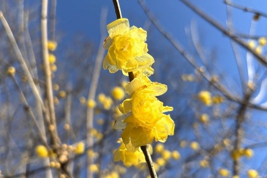 「みはらしの里」入口ではソシンロウバイが、園内に彩りを添えています。花弁は黄色の半透明でロウのような質感があり、開花した花の近くに寄ると甘い香りが感じられます。ロウバイは1月中旬ごろまでご覧いただけます。