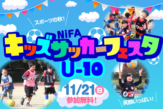 このたび、11月21日(土)に対象学年のお子様であればどなたでもご参加いただける『NiFAキッズサッカーフェスタU-10』(参加費:無料)を開催いたします。