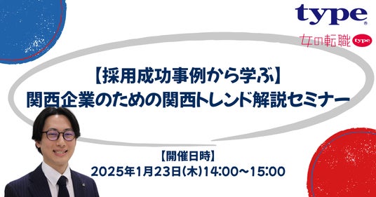 転職サイト「type」では、1/23(木)14時より、「【採用成功事例から学ぶ】関西企業のための関西トレンド解説セミナー」を開催いたします。