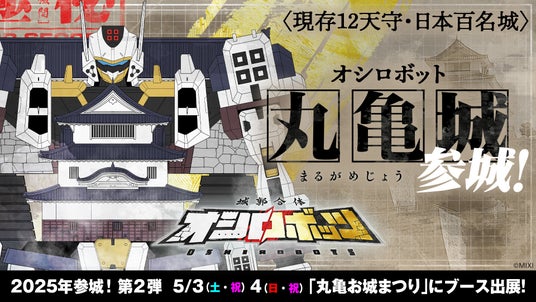 株式会社MIXI(東京都渋谷区、代表取締役社長 上級執行役員 CEO:木村 弘毅)は、MIXI_ANIMEオリジナルコンテンツ『城郭合体オシロボッツ』のオシロボット「丸亀城」を本日公開しました。また、2025年5月3日(土・祝)、4日(日・祝)丸亀城周辺で開催される「第76回 丸亀お城まつり」にブース出展します。ブースでは、オシロボット丸亀城のトレーディングカードや解説書の配布に加え、新発売となる「オシロボッツ御城印帳 Mk-II」や「オシロボット丸亀城御城印」を含めた物販を行います。