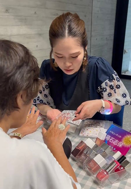 このプログラムとハリウッドをつなげてくださったのは、長年介護美容の最前線で活躍されている箱石志保さんです。箱石さんは平成元年生まれ。ご自身の祖父母の介護経験を経て、介護士の習得、介護施設でのお勤めも経験されながら、2022年から高齢者向け美容サービスを本格的に展開されています。