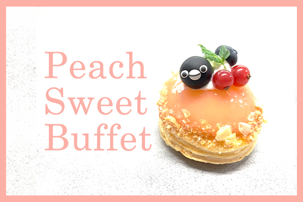 人気のピーチのタルト、ピーチとココナッツのムース、ピーチのネイキットケーキ、ピーチとバニラムースのメルバ、ピーチと葡萄のフワ泡ゼリー、ピーチのブラマンジェメロンのゼリー、ピーチとリュバーブのフルーツグラタン、ピーチのコンポートとベルベーヌのジュレ、ピーチとヨーグルトのロールケーキ、ピーチとローズのギモーブなど約20種類のスイーツがお楽しみいただけます。