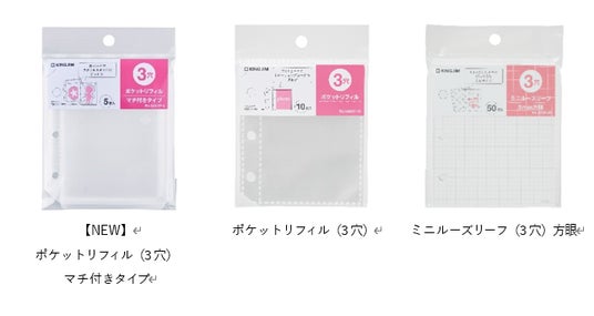 同時に発売する新たなオプション品「ポケットリフィル(3穴)マチ付きタイプ」はマチとフラップがついていて、缶バッジやアクリルスタンドなどの立体物も収納しやすく、脱落しにくくなっています。