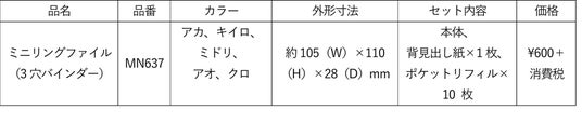 今回は第3弾として、長年にわたり多くのお客様にご愛用いただいている定番のロングセラー製品「クリアーファイル カラーベース」をモチーフにした「ミニカラーベース」と、「リングファイル」をモチーフにしたキングミニオリジナルデザインの「ミニリングファイル(3穴バインダー)」が登場します。