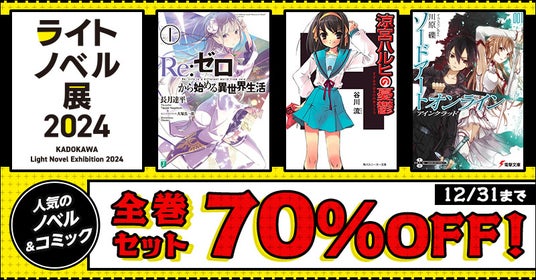 6,000作品以上のアニメが見放題(※)の「dアニメストア」( https://animestore.docomo.ne.jp/ )では、12月16日(月)までSHIBUYA TSUTAYAにて行われる「ライトノベル展 2024」の開催を記念して、大人気ノベル&コミックの全巻セットが70%OFFの特別価格で購入できるキャンペーンを開催中です。電子書籍をまとめ買いするなら、dアニメストアがおトク!年末年始は、気になる作品をイッキ読みしよう!