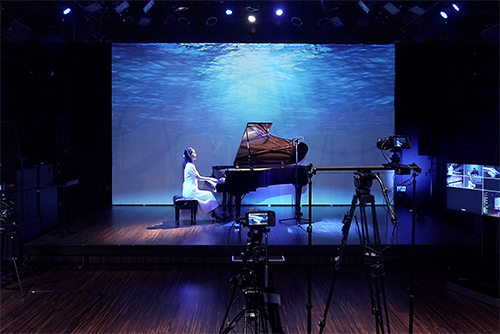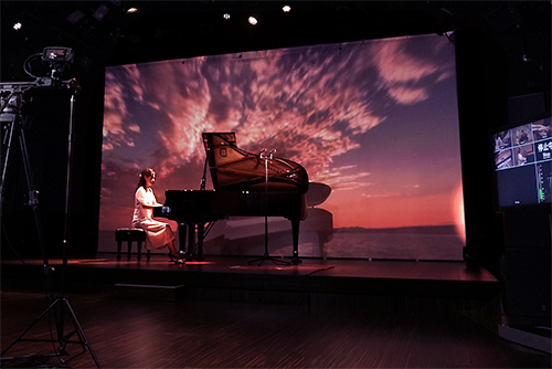 「TAKEOUT SHOW」は、本格的な機材を使って演奏動画を魅力的に撮影することができる無料の体験型イベントです。撮影用の照明で彩られたステージ上でヤマハグランドピアノ「S6X」を演奏する様子を、マルチアングルの高画質カメラや高音質マイクなどを利用して撮影し、プロのアーティストのような気分になれる動画撮影を体験していただけます。『TAKEOUT SHOW -NATURE-』では、あらかじめ選択した美しい自然情景の映像をスクリーンに映し出し、演奏に没入するピアニストを美しい自然情景で彩ります。なお、撮影や動画制作に関する専門的なスキルが無くても、自動撮影システムにより、だれでも簡単に演奏動画を撮影することができます。収録後には、時間内に撮影した複数の動画データの中から1つを、スマートフォンやPCなどお持ちのデバイスにダウンロードして、動画サイトやSNSなどへの発信用、あるいはご自身の記録用としてお持ち帰りいただけます。