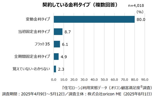 ■契約している住宅ローンの金利タイプ:「変動金利タイプ」が8割で最多に