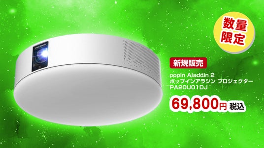 楽天市場「Show !t」では、大人気プロジェクター「popIn Aladdin 2」を数量限定で販売中です。価格は¥69,800(税込)一度流通した商品を回収し、外装等を交換し、動作確認を行ったうえで再出荷した商品です。外観も新しく、動作も正常です。この機会をお見逃しなく。