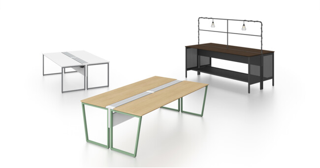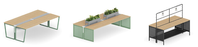 ソロワーク用に加え、コミュニケーションを促すハイタイプもラインアップします。オープンオフィスに必要なセッティングを網羅し、テーブル用の植栽や照明を取り付け出来るテーブル上フレームなど、豊富なオプションがさらに用途の幅を広げます。