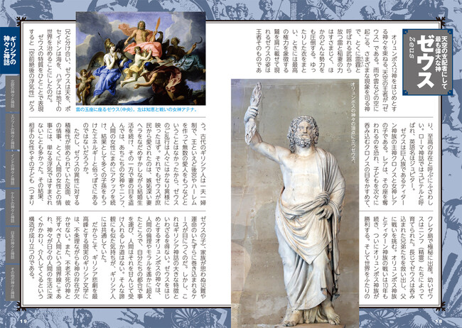 雷霆を持つゼウスや竪琴を持つアポロン(ギリシア神話)、鎧と兜に身を固め、戦場を駆け抜ける9人の乙女ワルキューレ(北欧神話)、王冠をかぶり、手に杖と鞭をもったオシリス(エジプト神話)など、その神がどのような顔や姿をしていたのか、何を持っていたのか、などの特徴も、豊富な図版とともに解説しています。