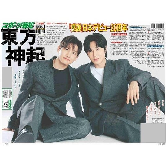 報知新聞社(代表取締役社長・依田裕彦)が発行するスポーツ報知では「東方神起特別1面新聞」を4月28日(月)からスポーツ報知Yahoo!ショップで発売します。25日~27日に東京ドームで行われたライブを記念して、ユンホ&チャンミンのインタビューを一面に掲載した特別版を25日付【I】、26日付【II】、27日付【III】として東京ドーム周辺で発売。現地でしか買えなかった特別1面新聞を通信販売でも販売します。特別紙面ページ以外は当日付スポーツ報知の紙面になります。数に限りがございますのでご了承ください。