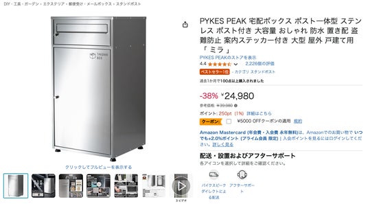 この度、Fun Standard株式会社(本社:福岡県大野城市/株式会社RKB毎日ホールディングス グループ/代表取締役:大屋 良介、笹森 広貴)が展開するブランド「PYKES PEAK(パイクスピーク)」の宅配ボックス【ミラ】 が、Amazonの「スタンドポスト」カテゴリーにて、ベストセラーを獲得しました。