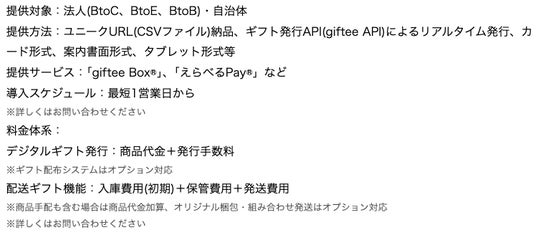 (※2) giftee for Businessとは、eギフトを活用した法人・自治体向けサービスです。キャンペーンの景品やお客様への謝礼にeギフトをご利用いただけます