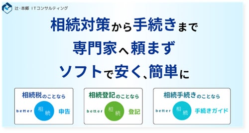 相続税の計算から対策の相談ができる「better相続申告 生前準備プラン」、相続が発生して何から手を付ければいいのか分からない方がはじめに取り組む「better相続手続きガイド」、相続した不動産の名義変更を誰でも簡単に、自分で行える「better相続登記」、相続税の申告を自分で簡単に完結できる「better相続申告」等の、Webブラウザにて行うことができるサービスを提供しています。