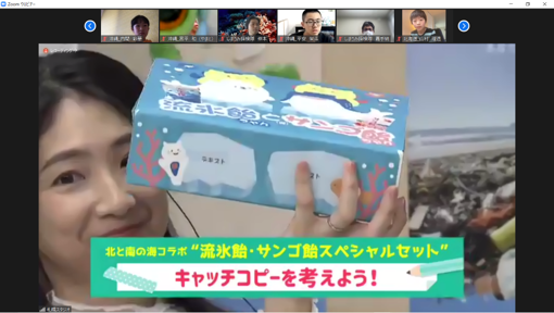 オホーツク海のことについてたくさん勉強した最後には、講師の先生方へ子どもたちからの質問タイム。「植物プランクトンが食べる栄養は?」「流氷がある時とない時で海の塩分濃度は違う?」「オホーツク海から流氷が無くなったら海の透明度は変わる?」など海の専門家である講師の先生方も思わず回答に詰まるほど鋭い質問がどんどん飛び出し、子どもたちの海の学びに対する意識の高さがひしひしと感じられました。今回の学びの成果は、第1回~第3回の調査隊の体験を通して、印象に残っていることや海の未来へつなぐメッセージやイラストを宿題として書いてもらいました。このメッセージは網走のオホーツク流氷館に掲出されます。もう1つの成果として「流氷飴とサンゴ飴」のオリジナル商品を開発。そのキャッチコピーを子どもたちに考えてもらい、採用されたキャッチコピーは商品の箱に印刷されて実際に販売されます。(販売は2022年春頃を予定)