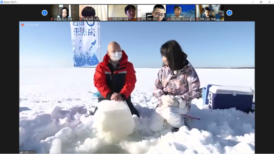 海と日本PROJECTin沖縄県実行委員会と海と日本プロジェクトin北海道実行委員会は、第3回オホーツク流氷調査隊を2月12日(土)に北海道網走エリアを舞台にオンライン形式で開催しました。沖縄からはしまうみ探検隊の10名、北海道からは第2回オホーツク流氷調査隊2021(主催:海と日本プロジェクトin北海道実行委員会)の9名がそれぞれ参加し、小学5・6年生合計19名がオンラインでひとつのチームとなって取り組みました。