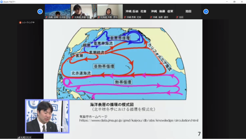 続いて、東海大学の大橋先生からは「沖縄と北海道の海の海流のつながり」や「流氷が凍るときのお話」、「サロマ湖とオホーツク海の塩分について」などの講義を受けました。