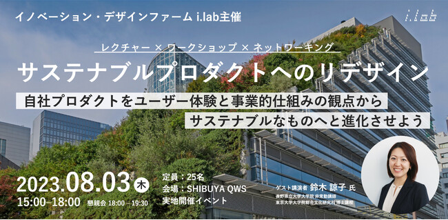 イノベーション・ラボラトリ株式会社(本社:東京都台東区、代表:横田幸信、以下i.lab)は、2023年8月3日(木)に、サステナビリティについて、環境的な側面だけでなく、ユーザー体験と事業的仕組みに焦点を当てた、イベントを開催します。
